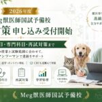 2026年度Meg獣医師国試予備校進級対策申し込み受付開始しました! 獣医学部生向け|マンツーマン進級対策 Meg獣医師国試予備校の 進級対策の募集を開始しました! 基礎科目・専門科目・再試対策まで。 大学の授業と試験範囲に合わせて、完全マンツーマンで進級をサポートします。 全学年対応|通 […] 公開済み: 2026年4月8日更新: 2026年4月25日作成者: iwasakiカテゴリー: お知らせ, コース, 獣医学部応援コンテンツ, 進級・卒業試験対策コースタグ: 獣医学部, 獣医師, 進級対策